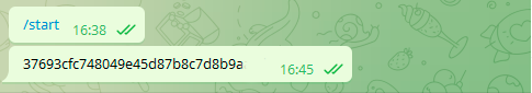 Then click Start or /start. Then go to the profile on the site and copy the binding code of the form 37693cfcfsd579e45d87b8c7d8b9aacd and paste it into the bot with a message